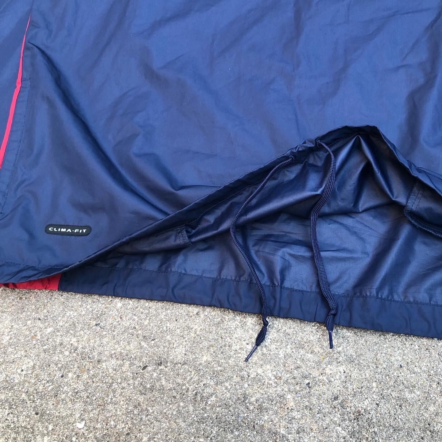 両脇や背中のベンチレーション、ネイビーとレッドのカラーの切り替え、に胸元のスウォッシュの刺繍、ゆったりとしたサイズ感など、テックの要素を揃えた魅力的な一着。