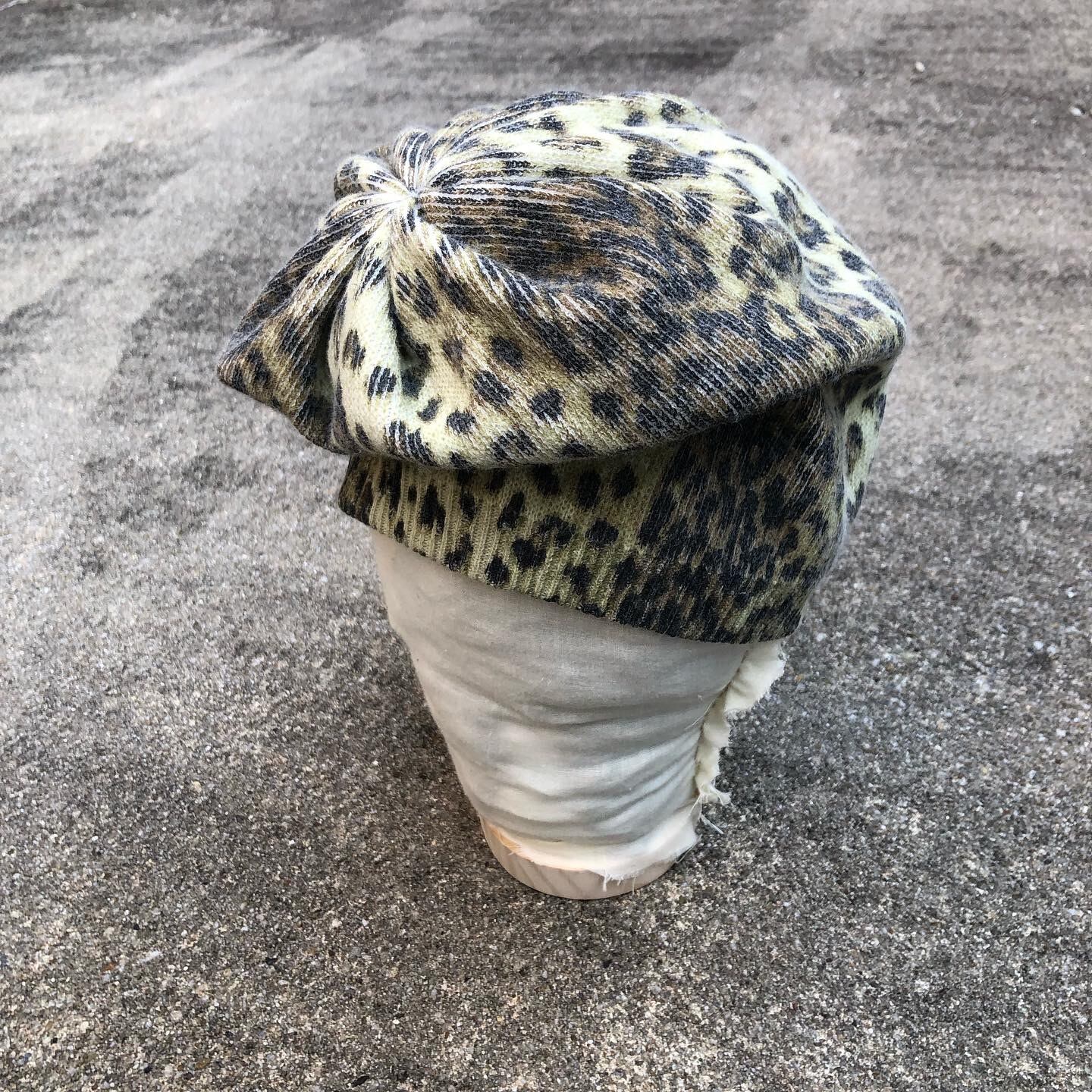 ヒョウ柄がプリントされたアクリルニットビーニーです。