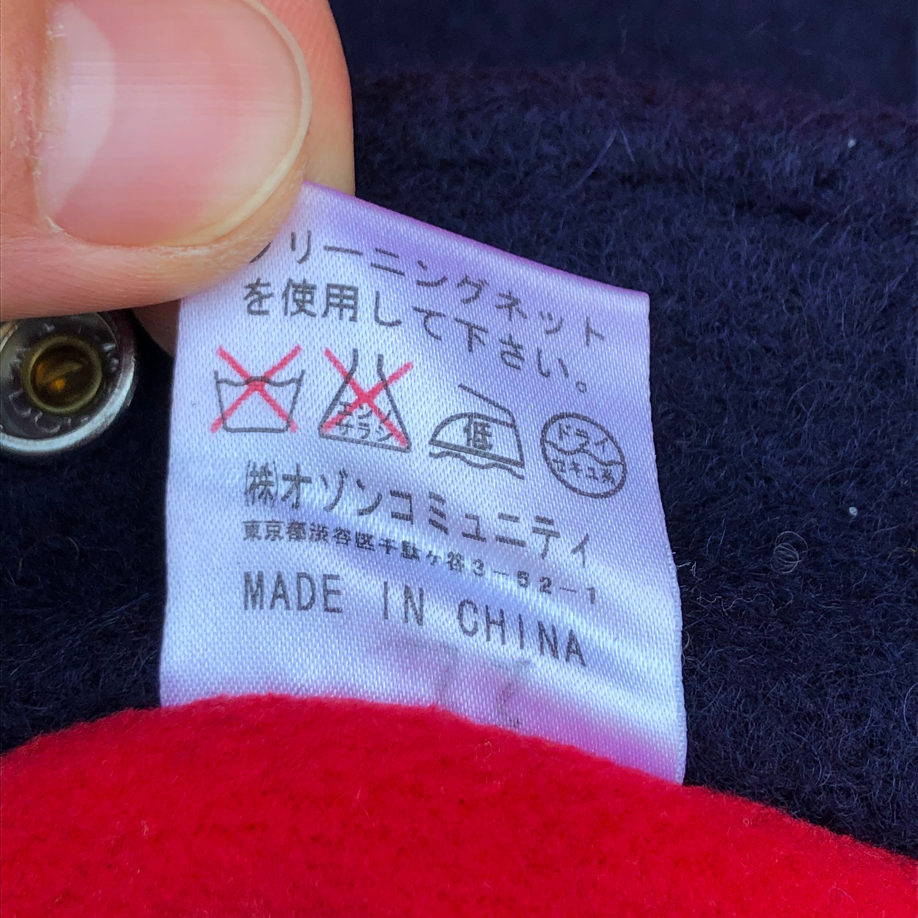 表面はネイビー、ポケットの裏地や裏面はフリース、発色の良い赤色、良好なカラーリング。