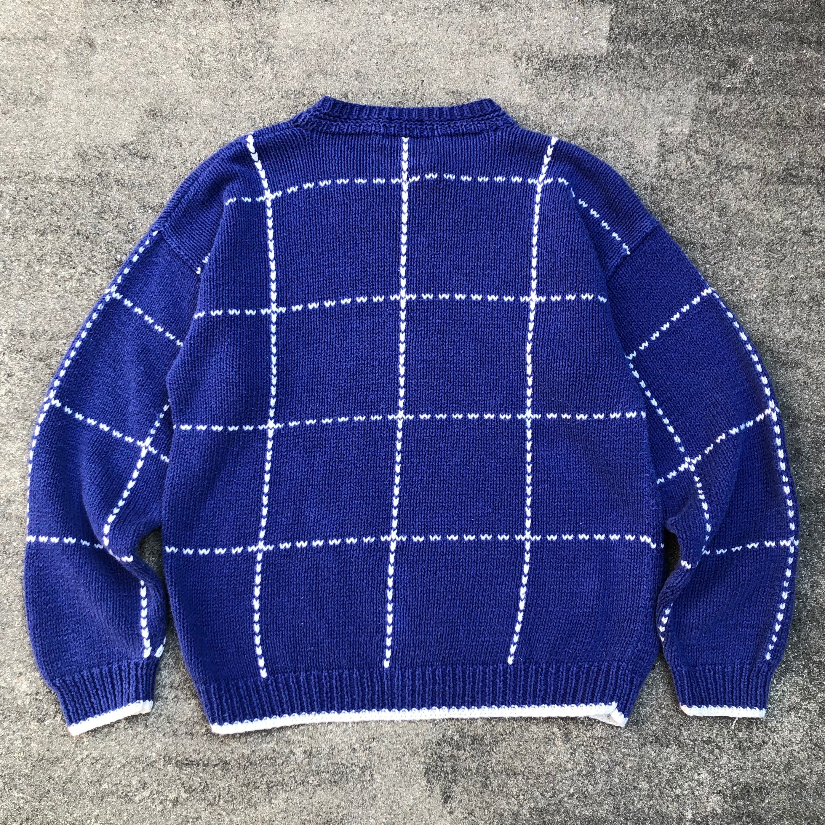 NAUTICA 90s world map pattern cotton linen knit