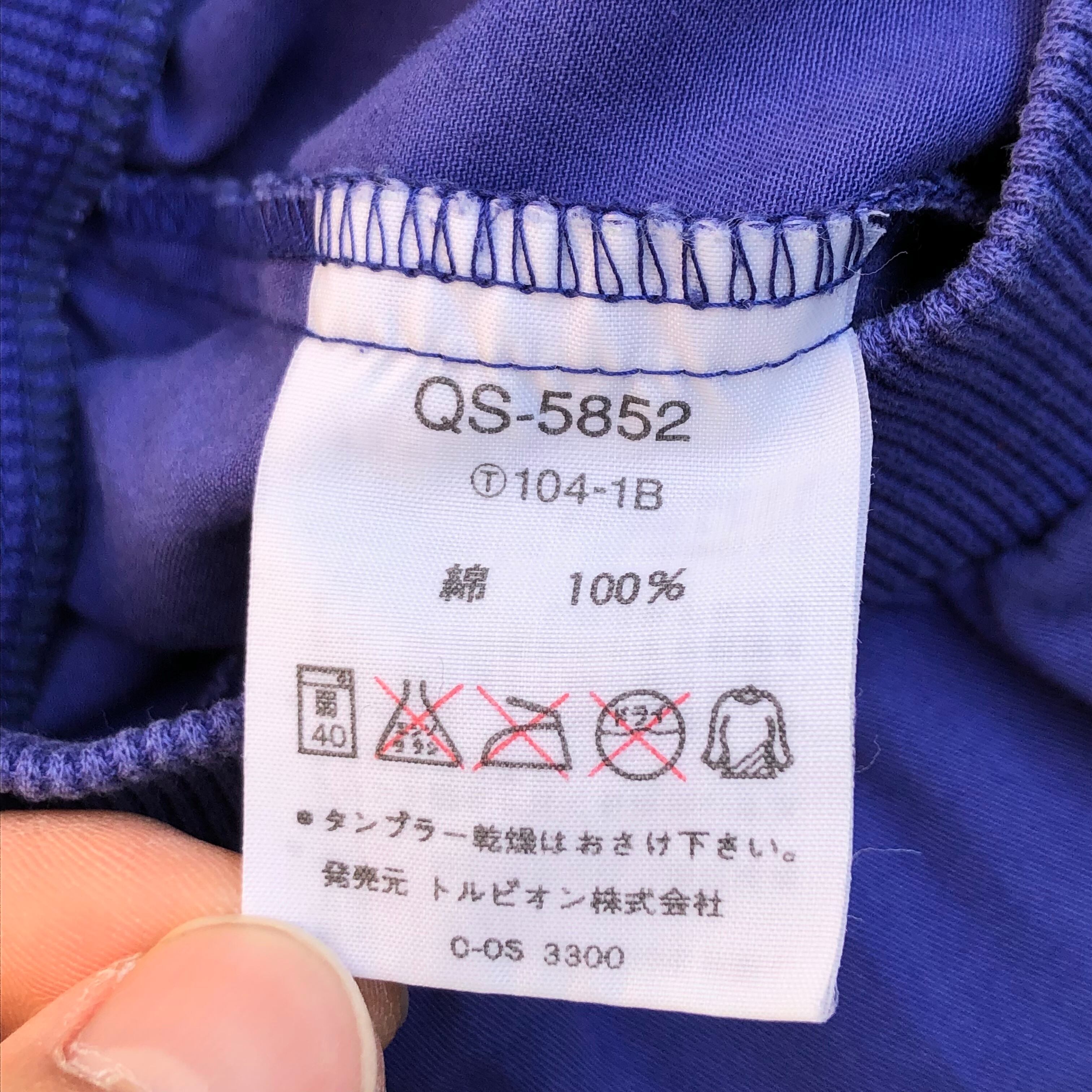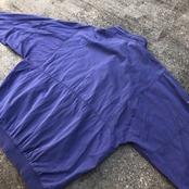 ボディや袖の縫製、裾のリブ、青みの強いネイビーのカラーリング、両肩の掠れたロゴ。
