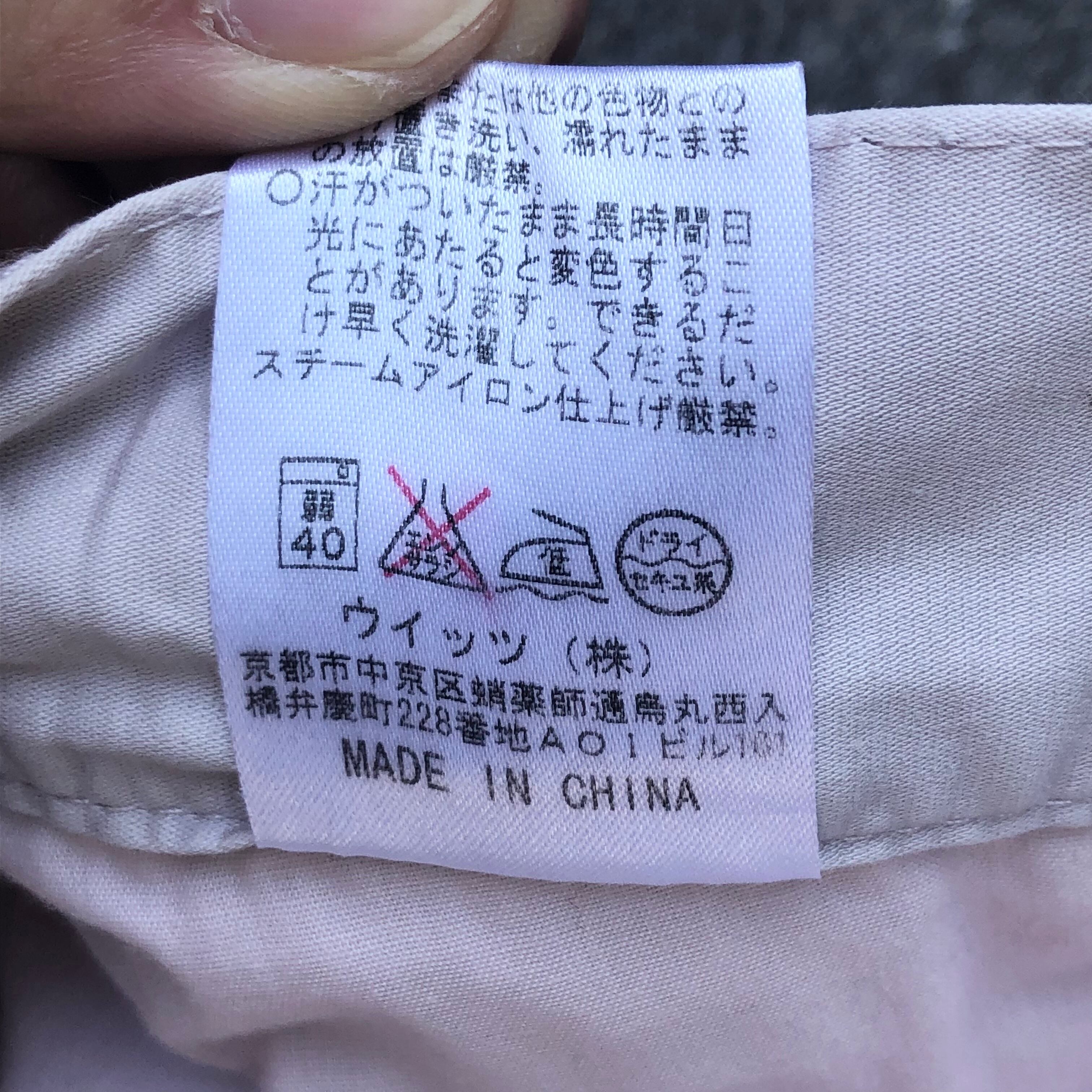 ナイロンのようなシャキッとしたコットン生地、バックポケット上の小さな龍の刺繍。