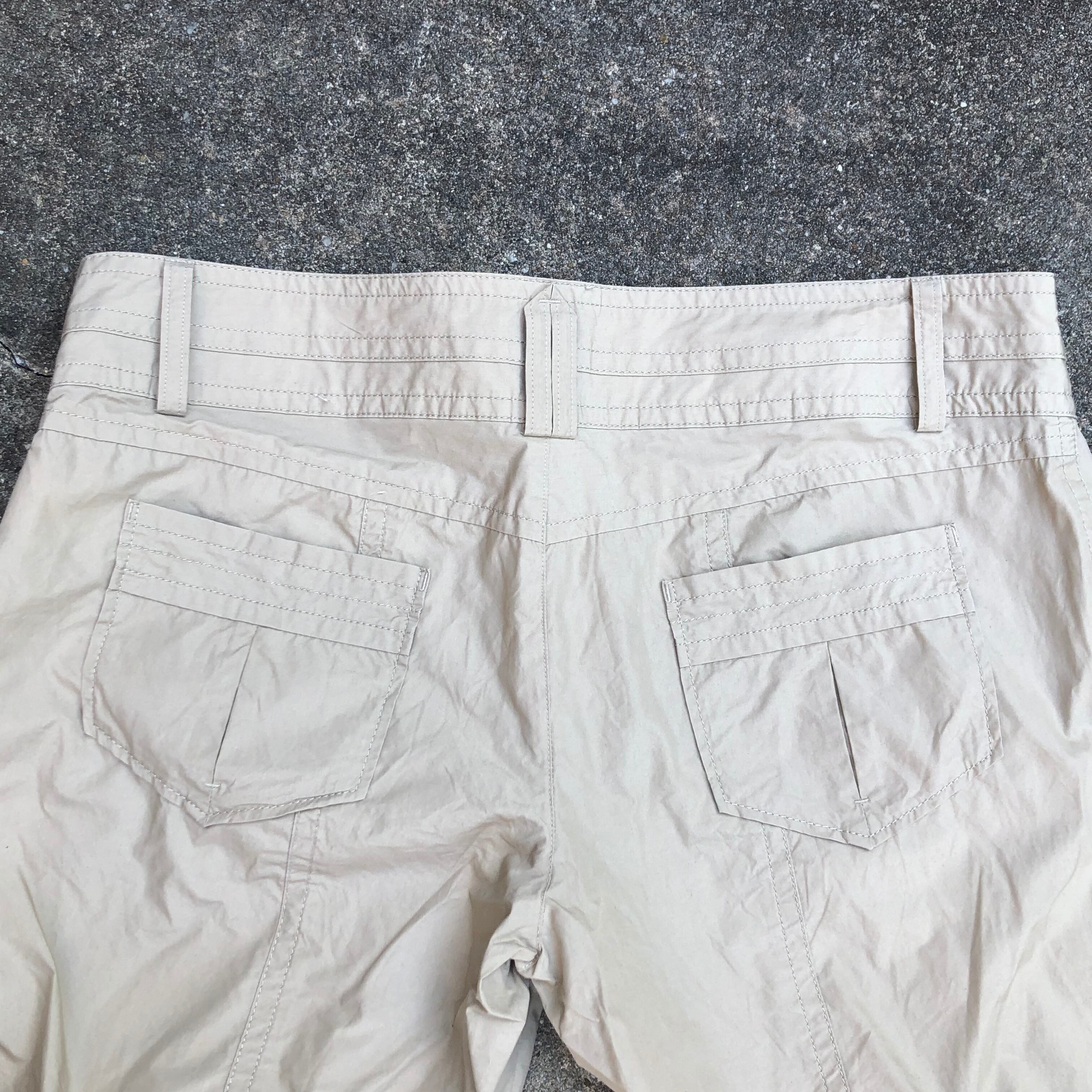 浅めの股上、ストレートかつ末広がりなシルエット、ナイロンのようなシャキシャキ感のある薄めの上質な圧縮コットン。