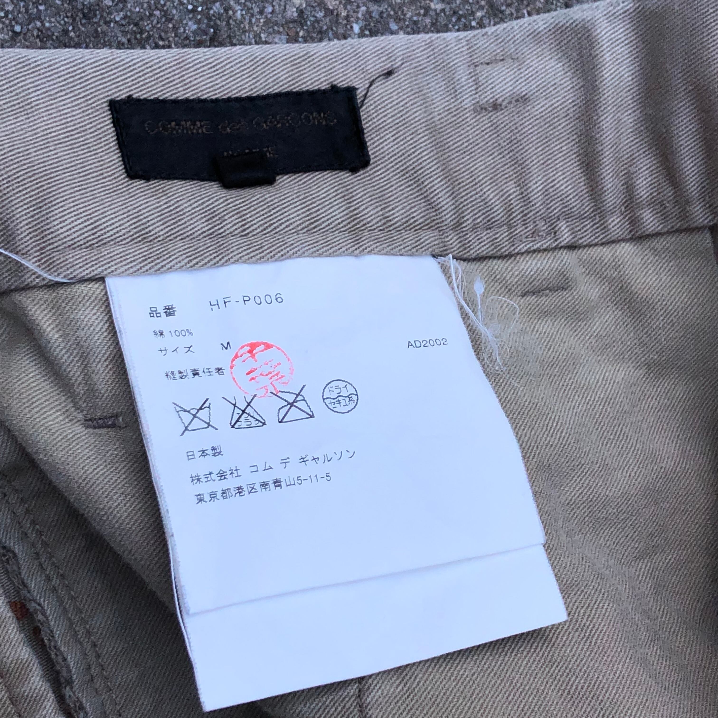爆笑問題の田中裕二の実の兄である田中啓一 氏がデザイナーを務めた通称「田中オム」期、2002年製のコムデギャルソンオムのチノパンツ。