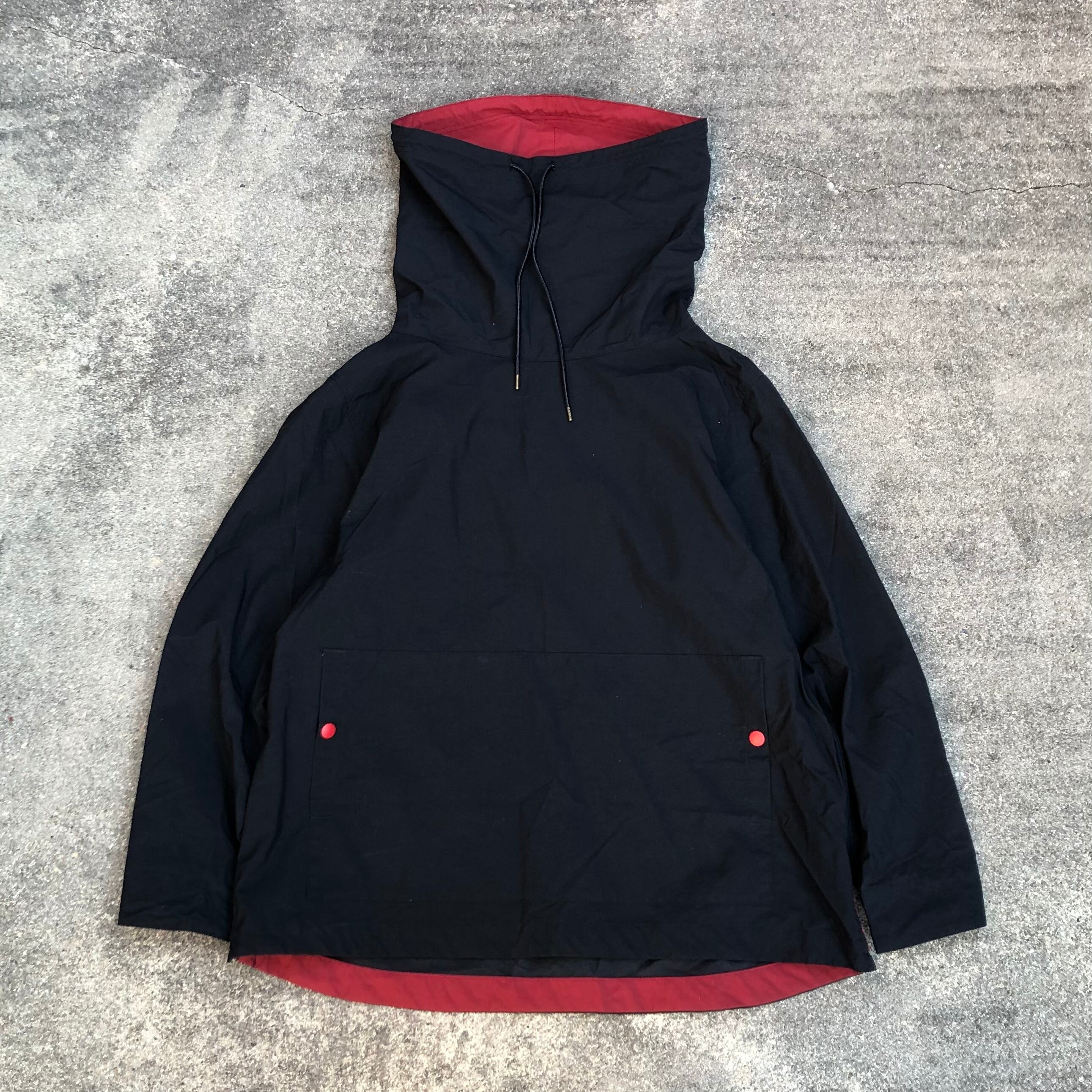 脇の下のスナップボタンによるベンチレーションや長方形のハンドウォームポケット、ゆったりとしたシルエットも魅力的。