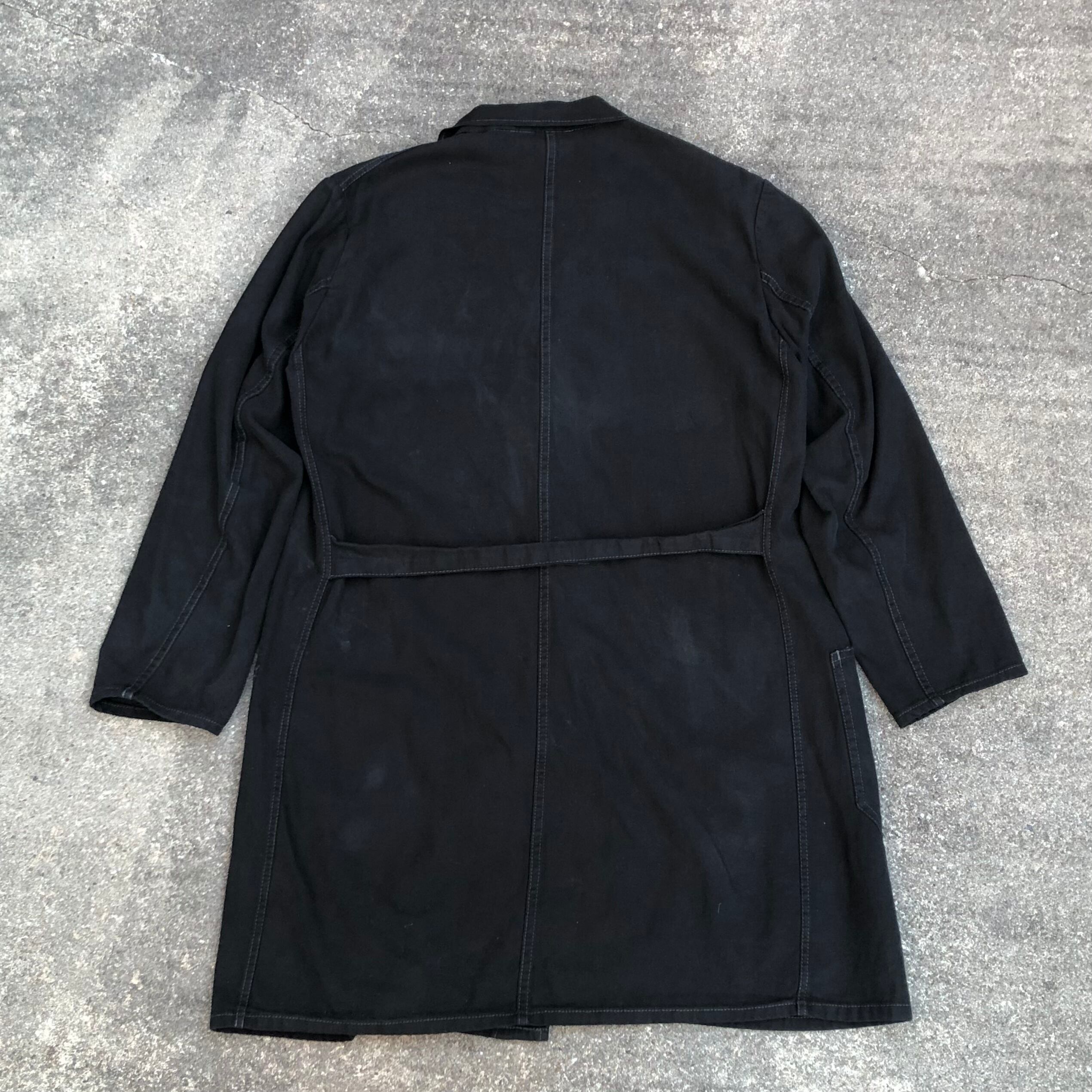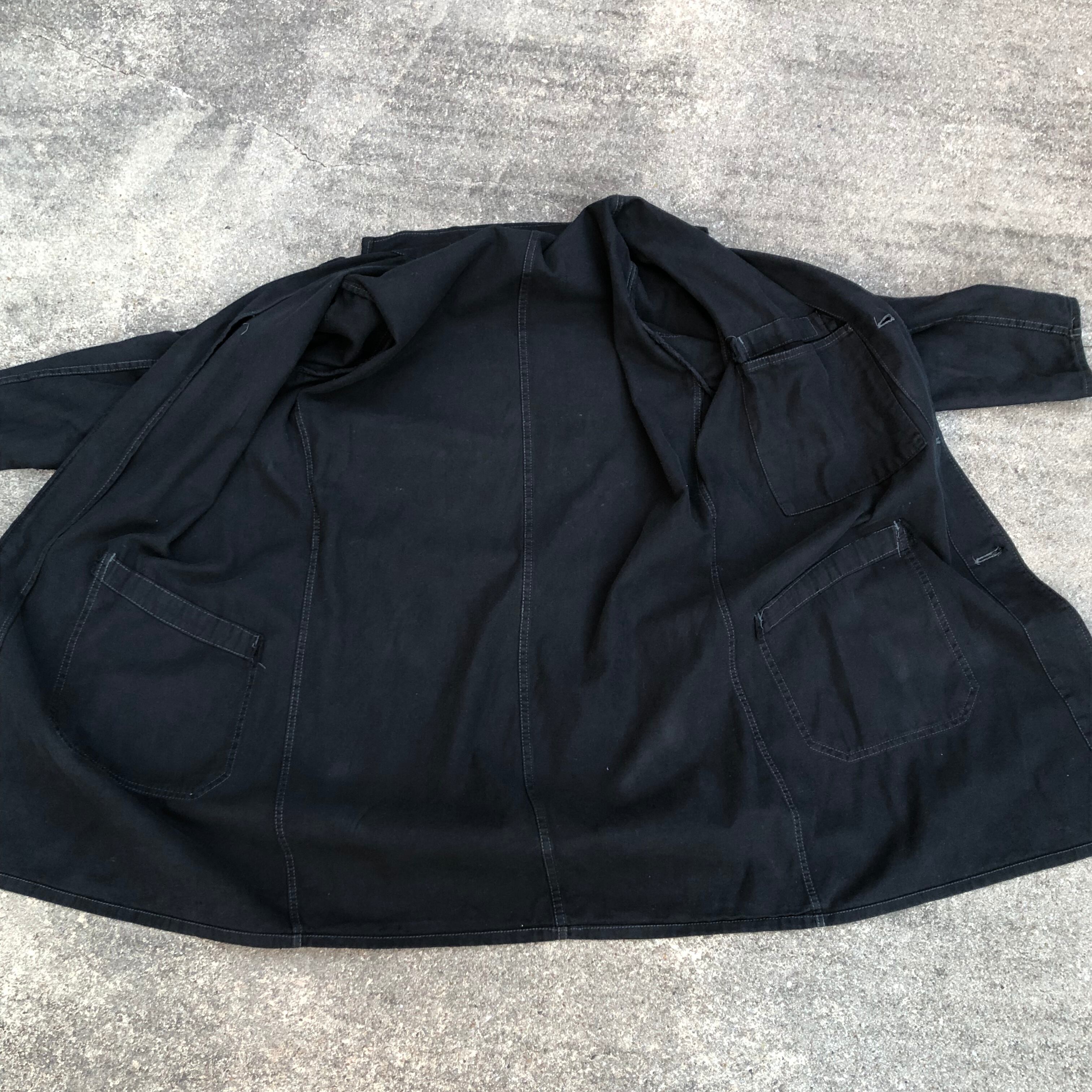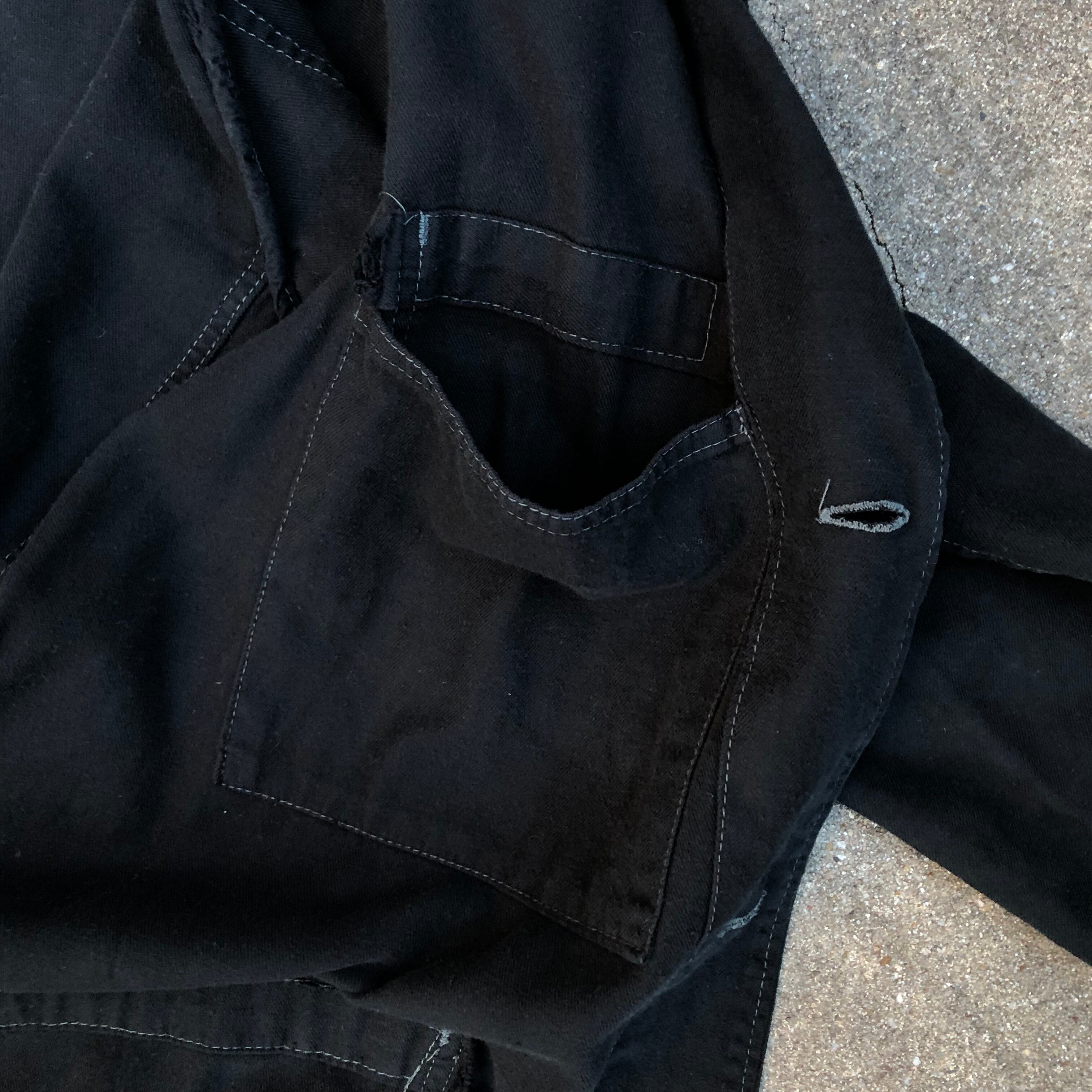 先染のブラックの柔らかいコットンの生地に、白いステッチが魅力的なカラーリング。
