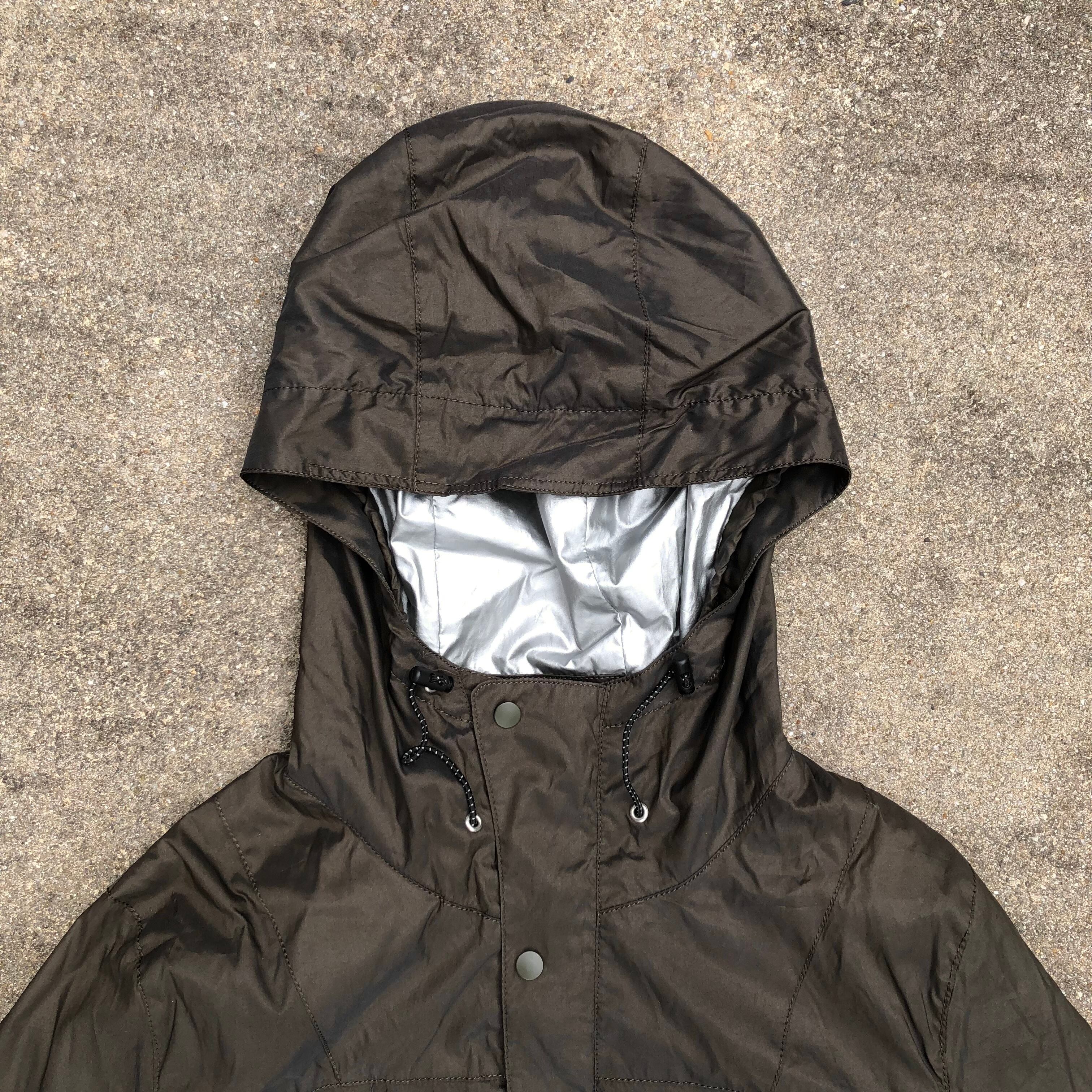 ドローコードやアルミホイルのようなカラーのフード裏など、程よいテック要素もありつつ、暗めのブラウンのカラーリングからシティー的な合わせやすさもある魅力的な一着。