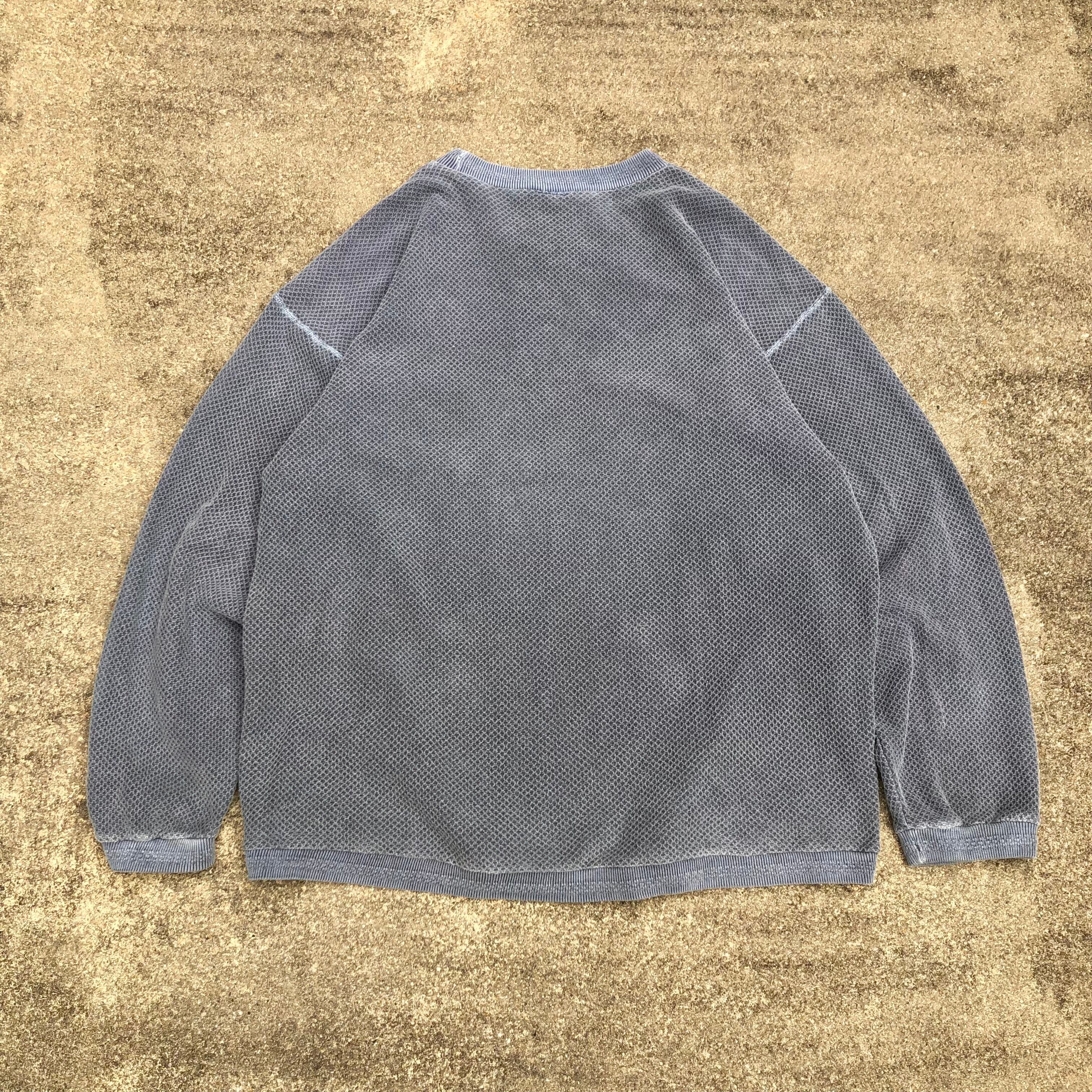 やや厚めのワッフルサーマルの生地、胸元のロゴパッチ、袖や裾のリブ。