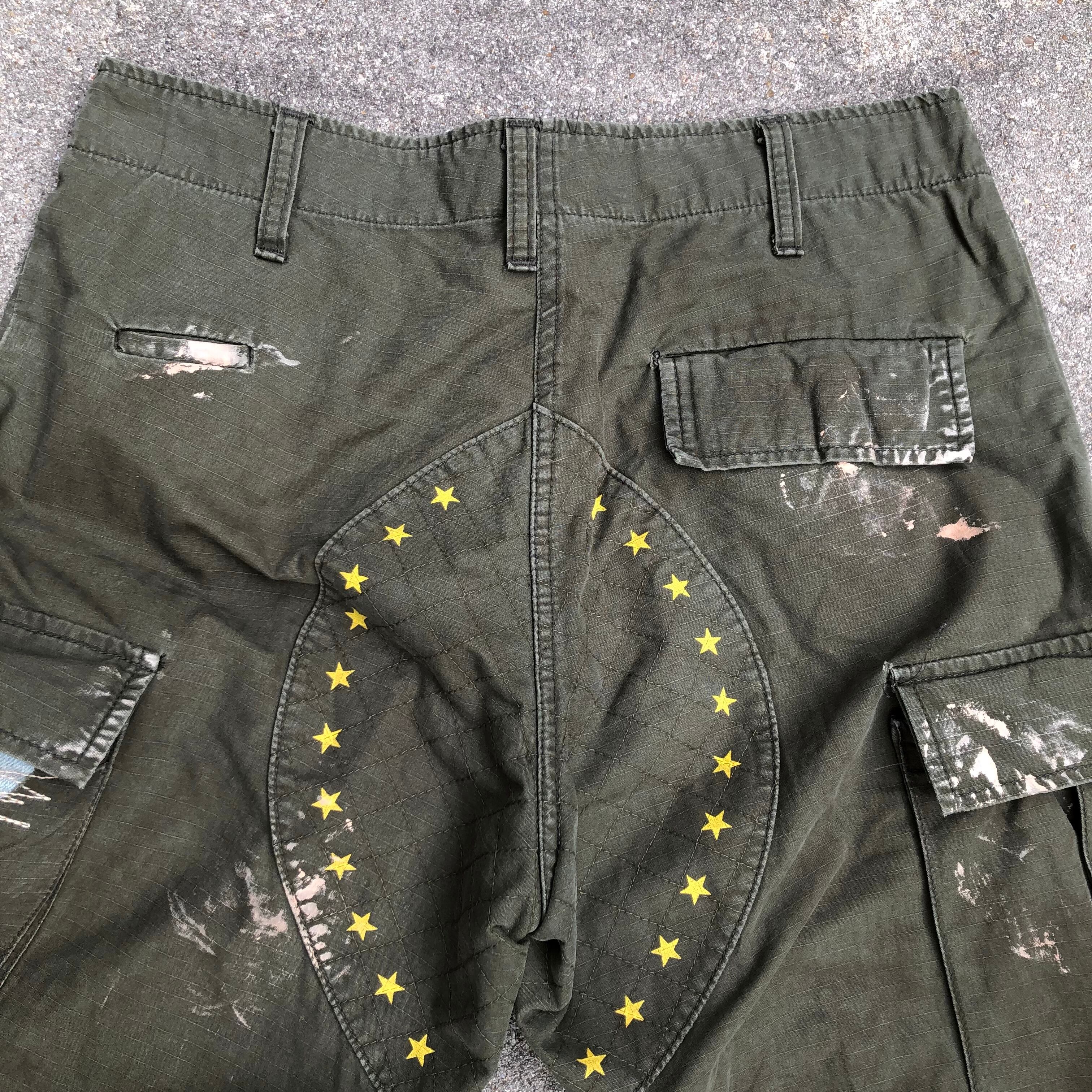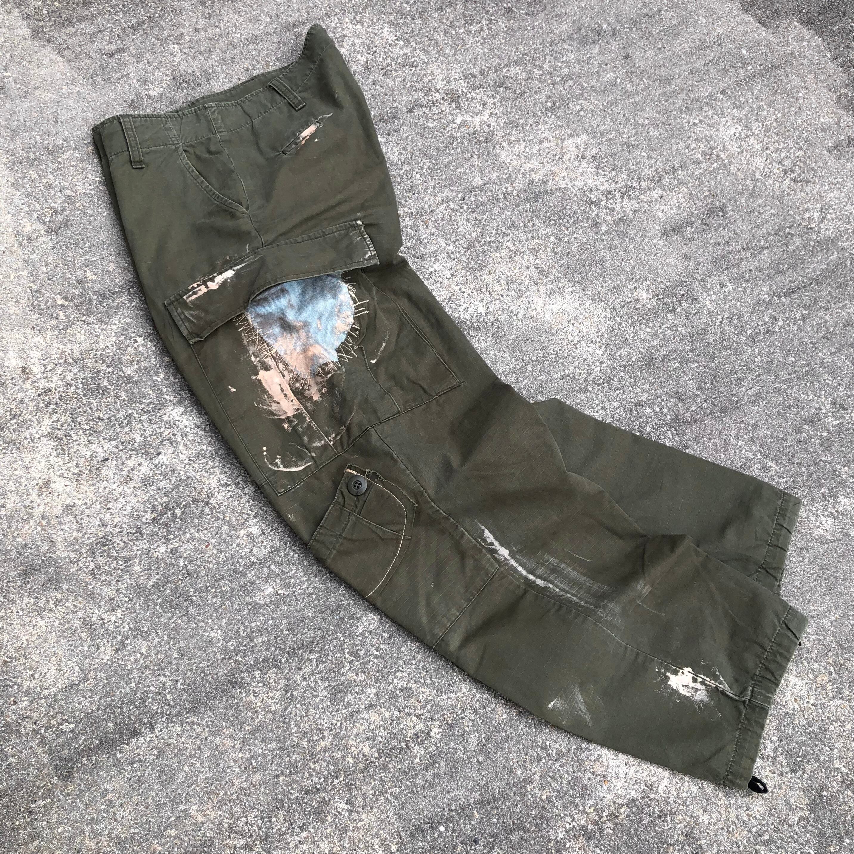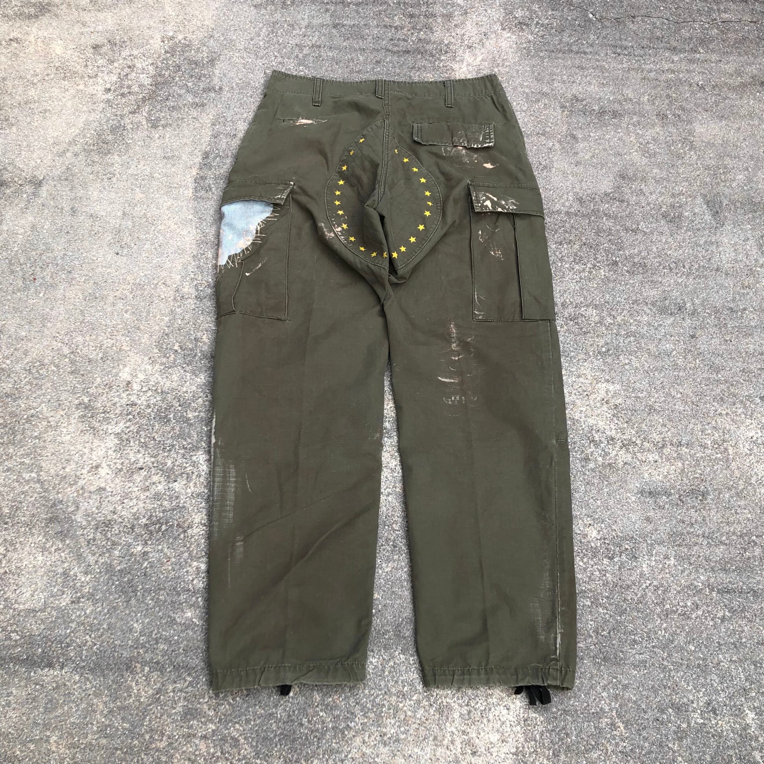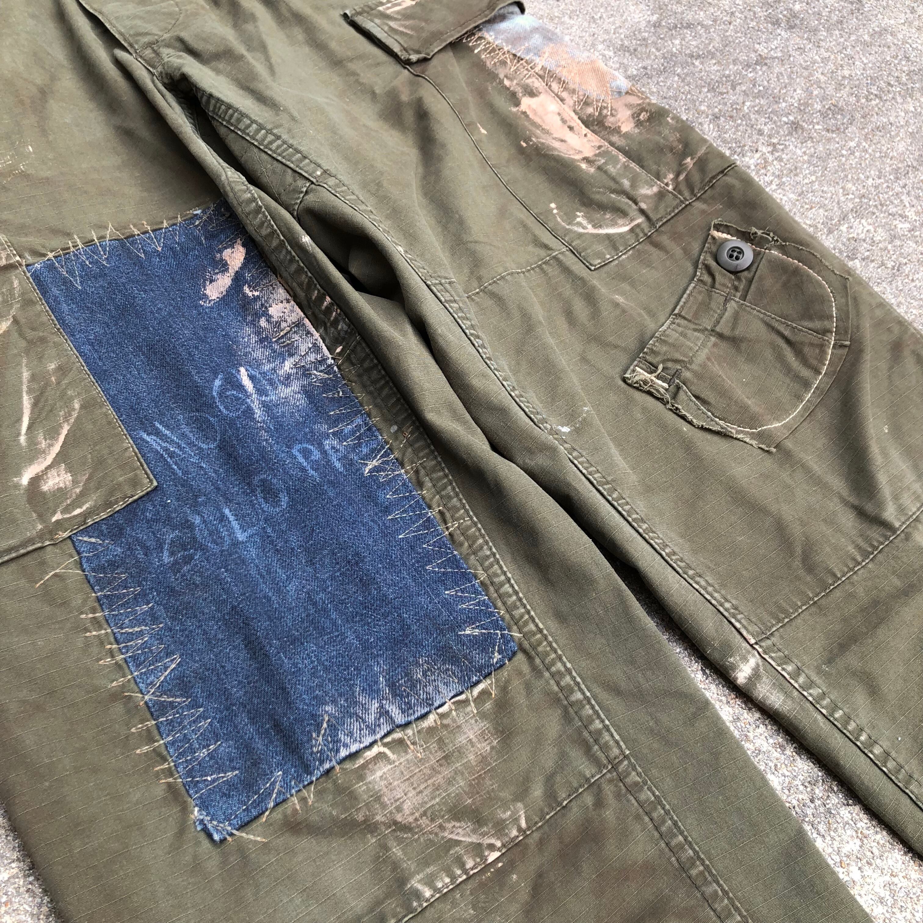 リップストップの生地やダブルニー、ボタンフライが特徴的なジャングルファティーグパンツをベースに手作業で再構築したスペシャルなカーゴパンツ。