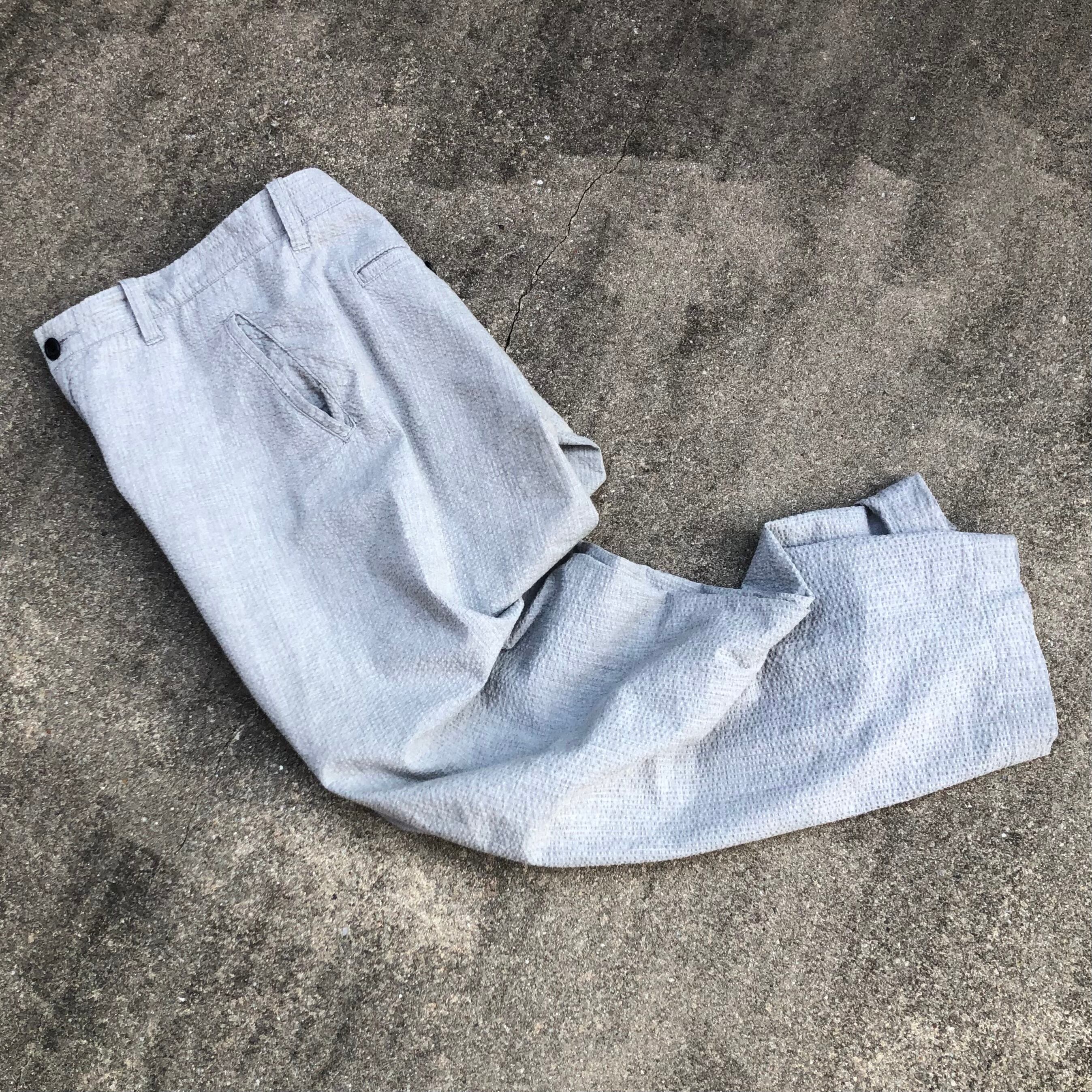 上質なコットン生地をシアサッカーに織り込んだワイドスラックス。