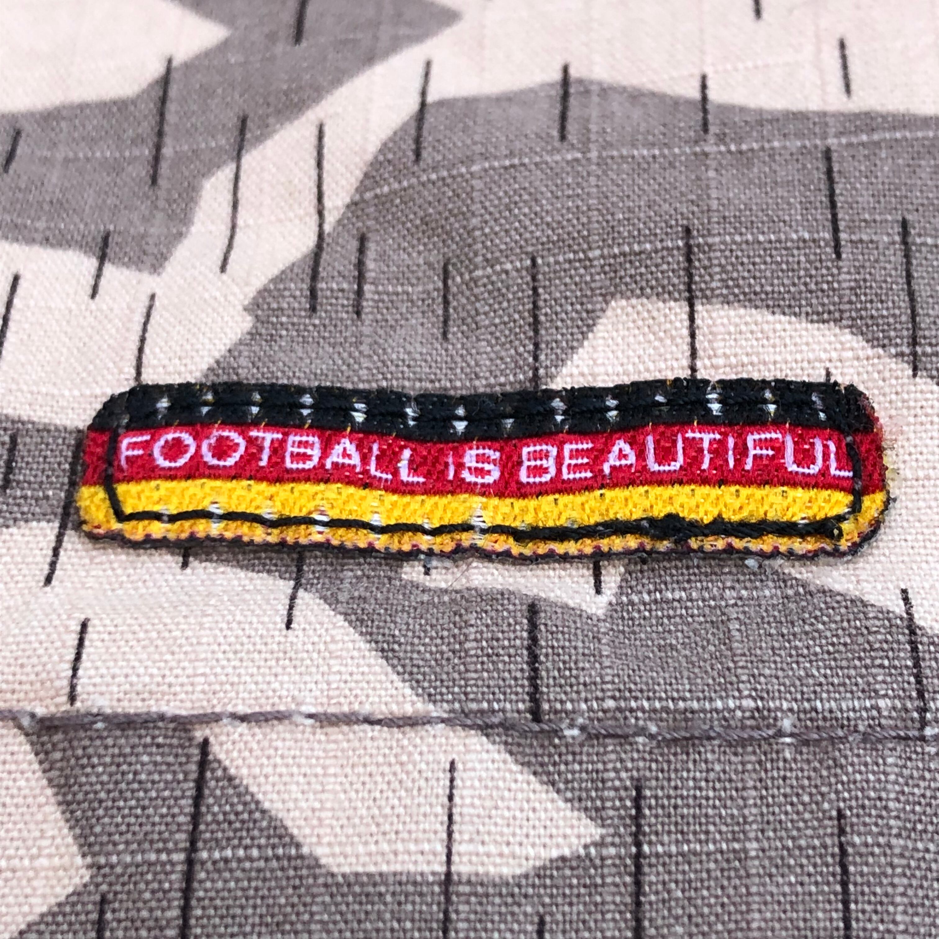 左足首近くにはドイツカラーのタグの上に「FOOTBALL IS BEAUTIFUL」の文字。