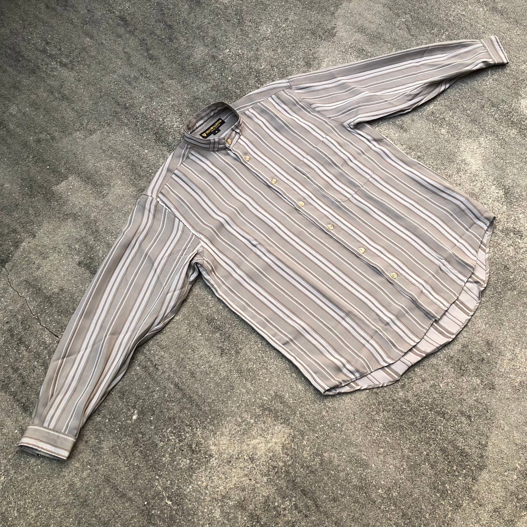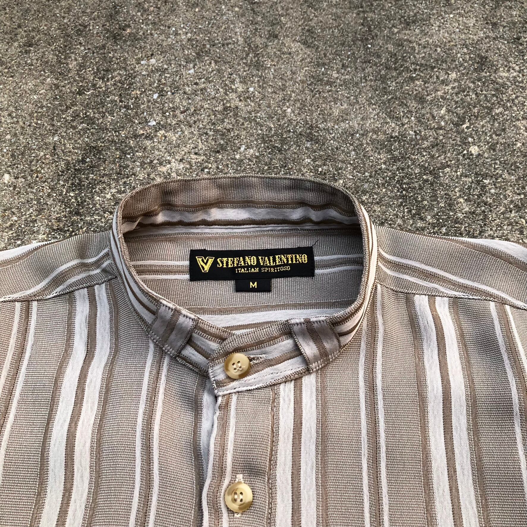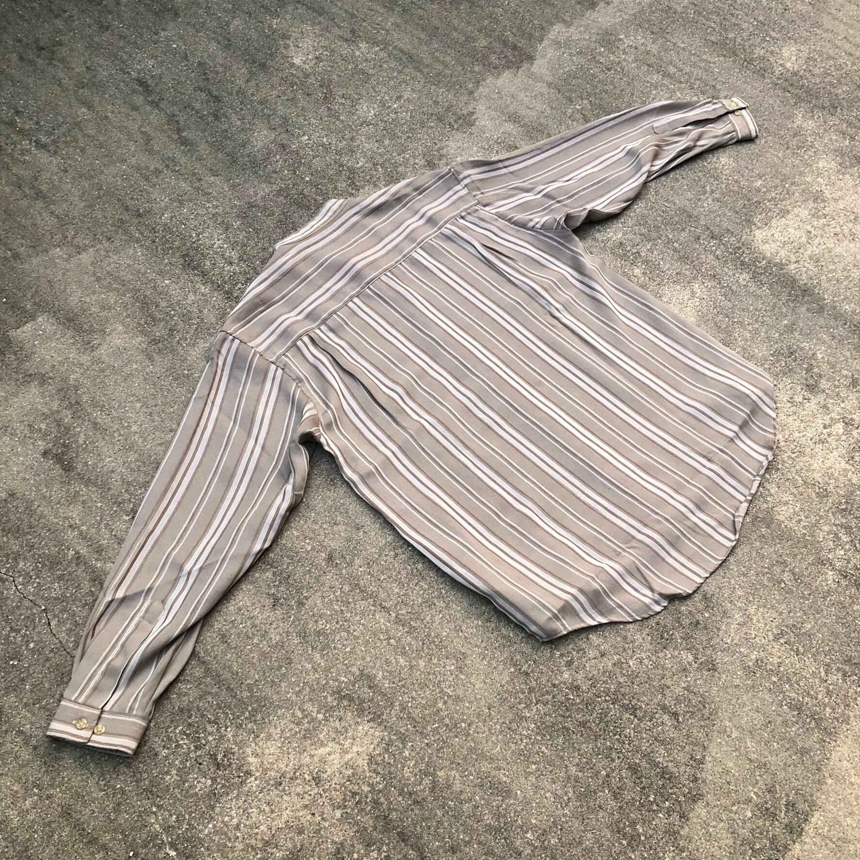 STEFANO VALENTINO 90s stripe pattern polyester stand collar shirt