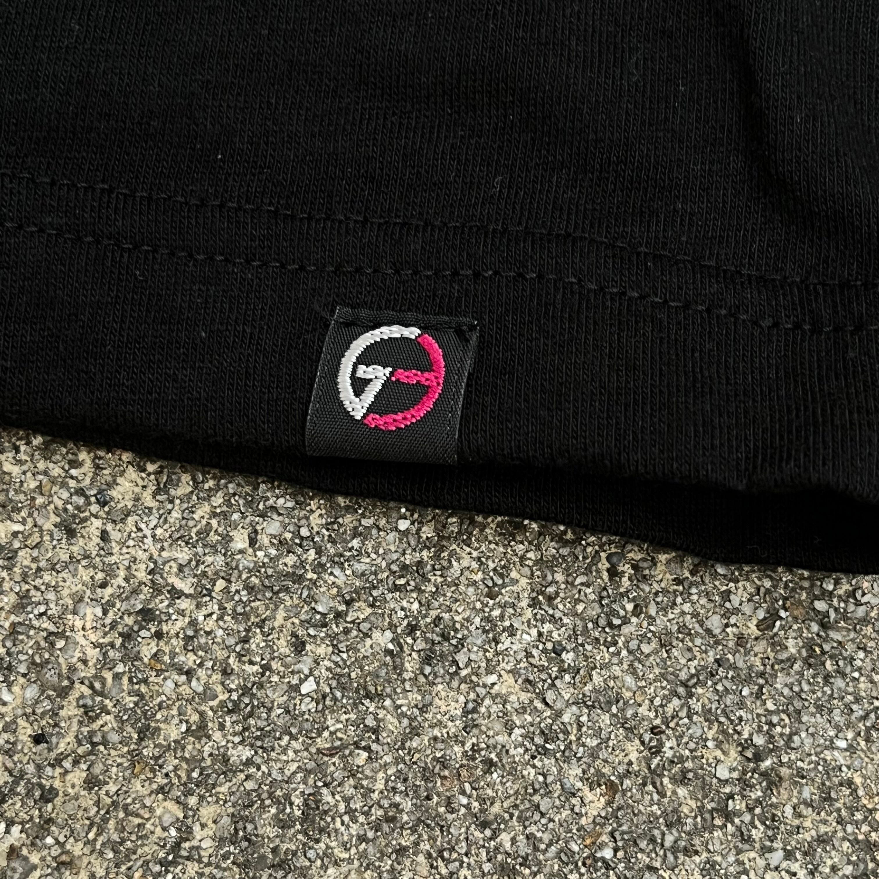 ブラックのボディに蛍光ピンクのプリント。