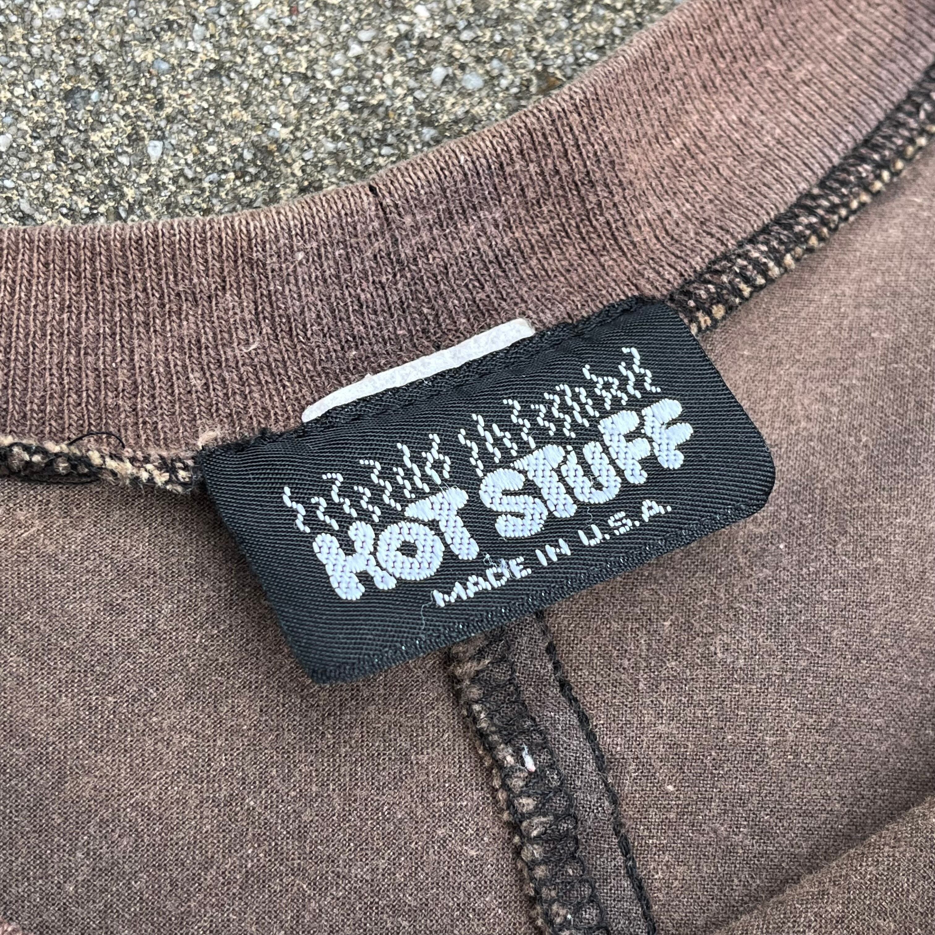 80年代、紙タグ、アメリカ製のブラウンの切り替えが見事な個性的なTシャツ。