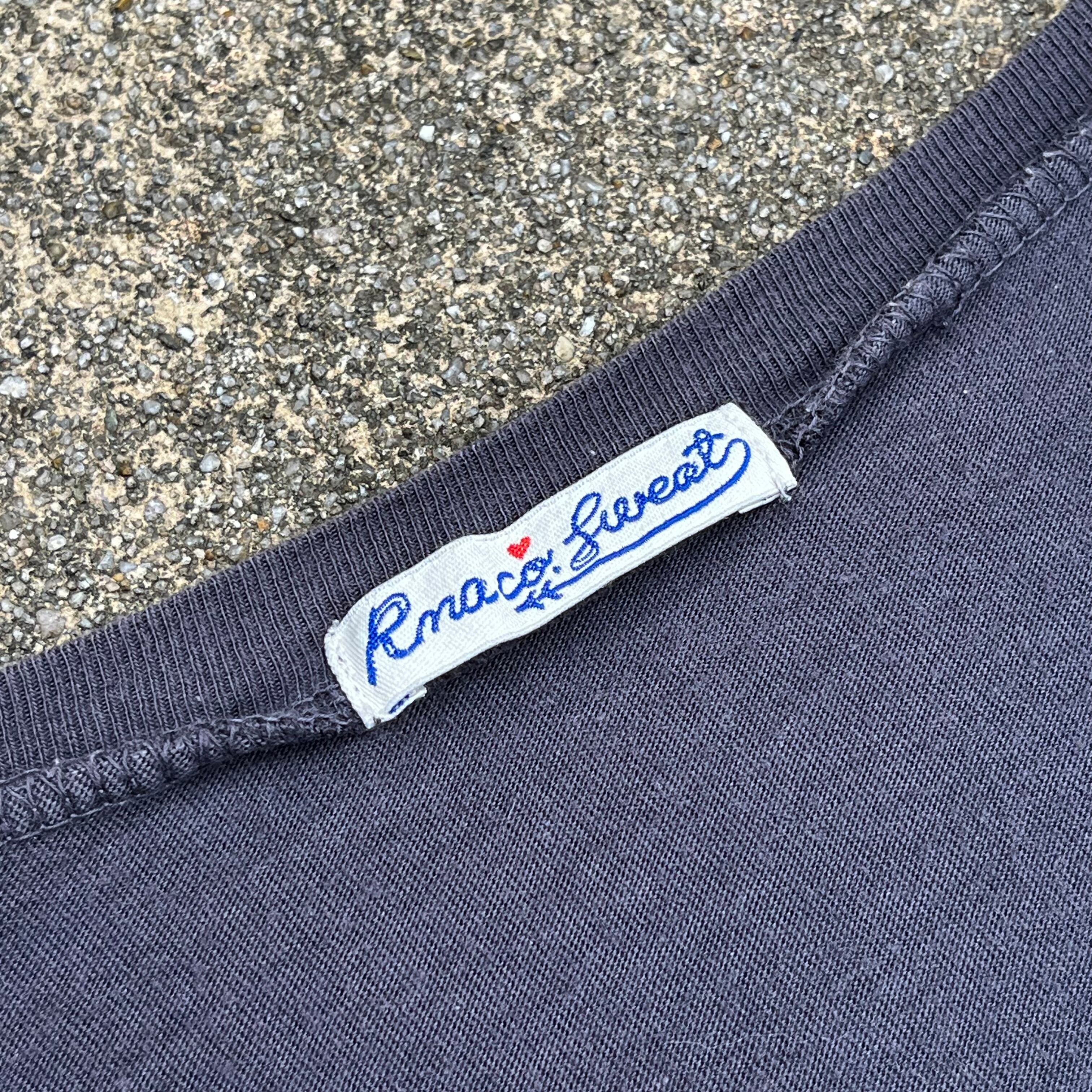 シングルステッチの裾、ボックスなボディ、褪せたブラックのカラー。