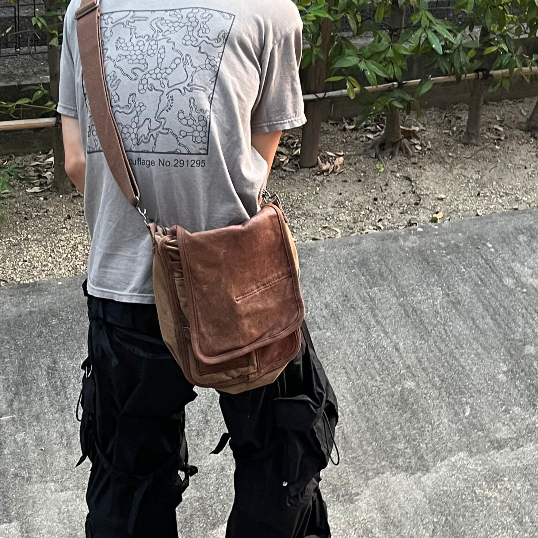 90年代頃のミリタリーサンプリング、レザーショルダーバッグ。