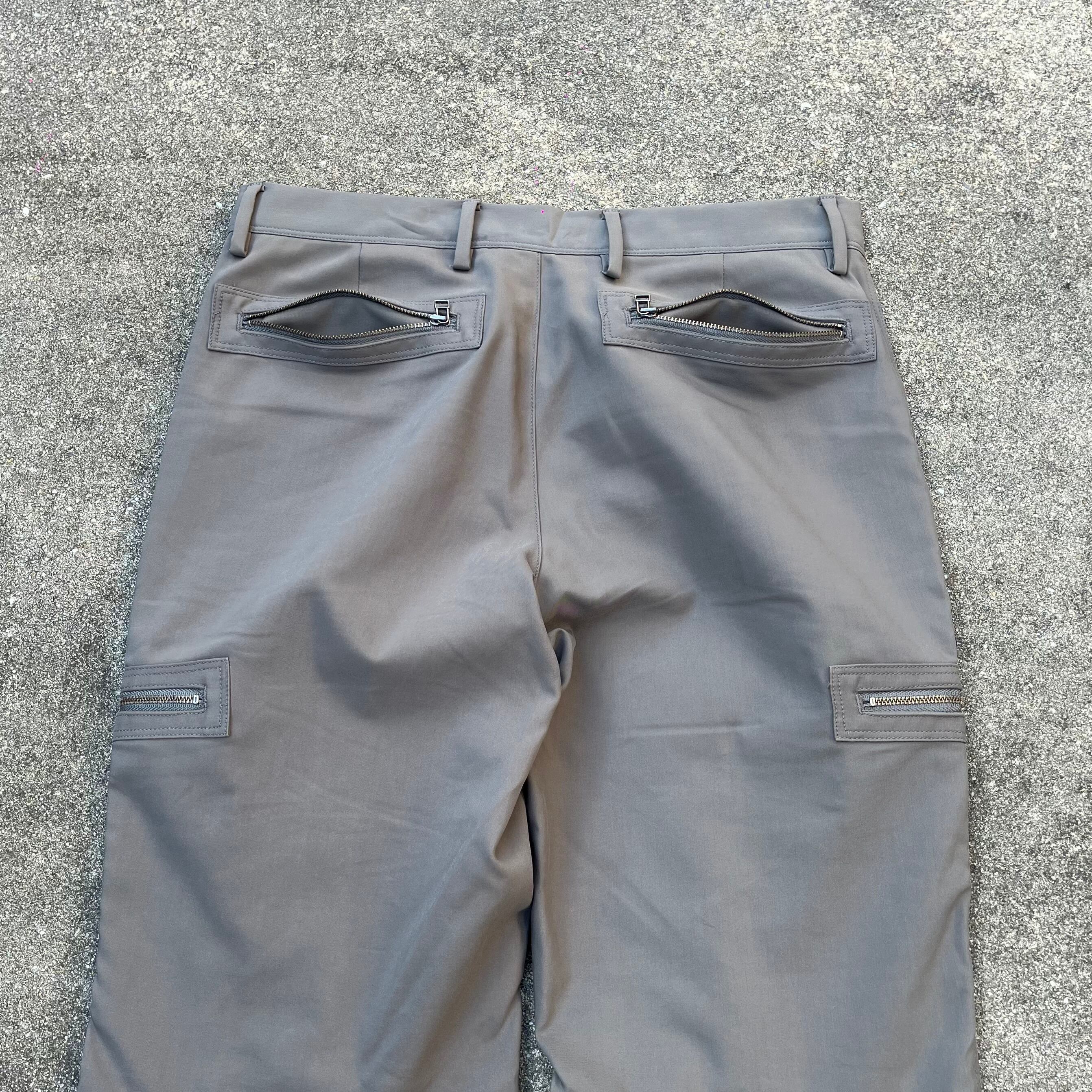 ポリコットンの生地感や膝のタックなどのテックな雰囲気を緩和する細身ストレートシルエットや高めな配置のカーゴポケット。