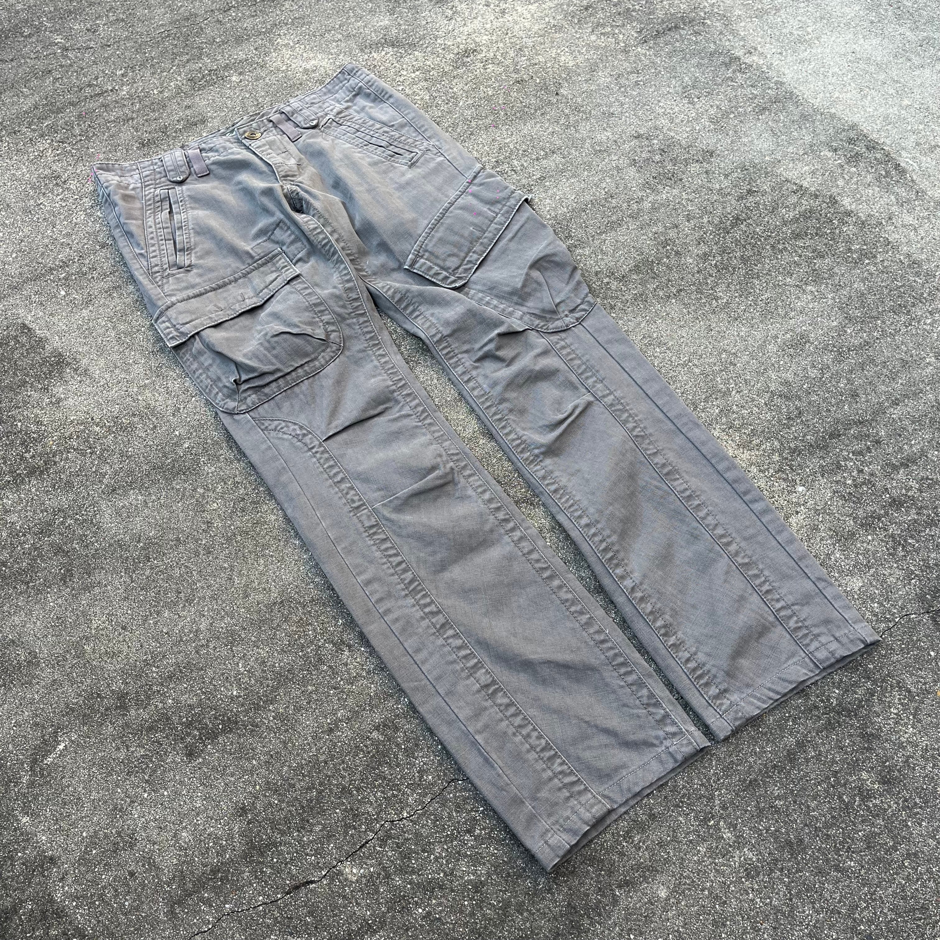 アシンメトリーな配置のポケット、膝下の縫製、極めて細身ストレートなシルエット。
