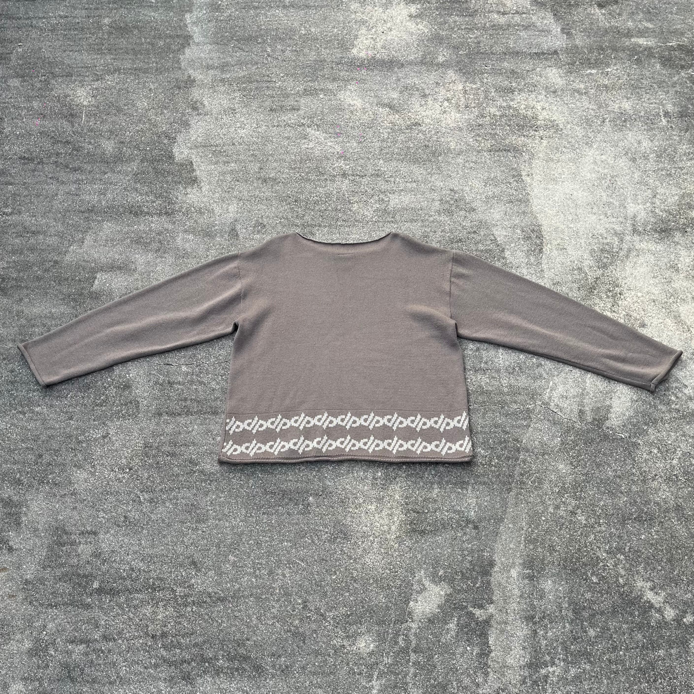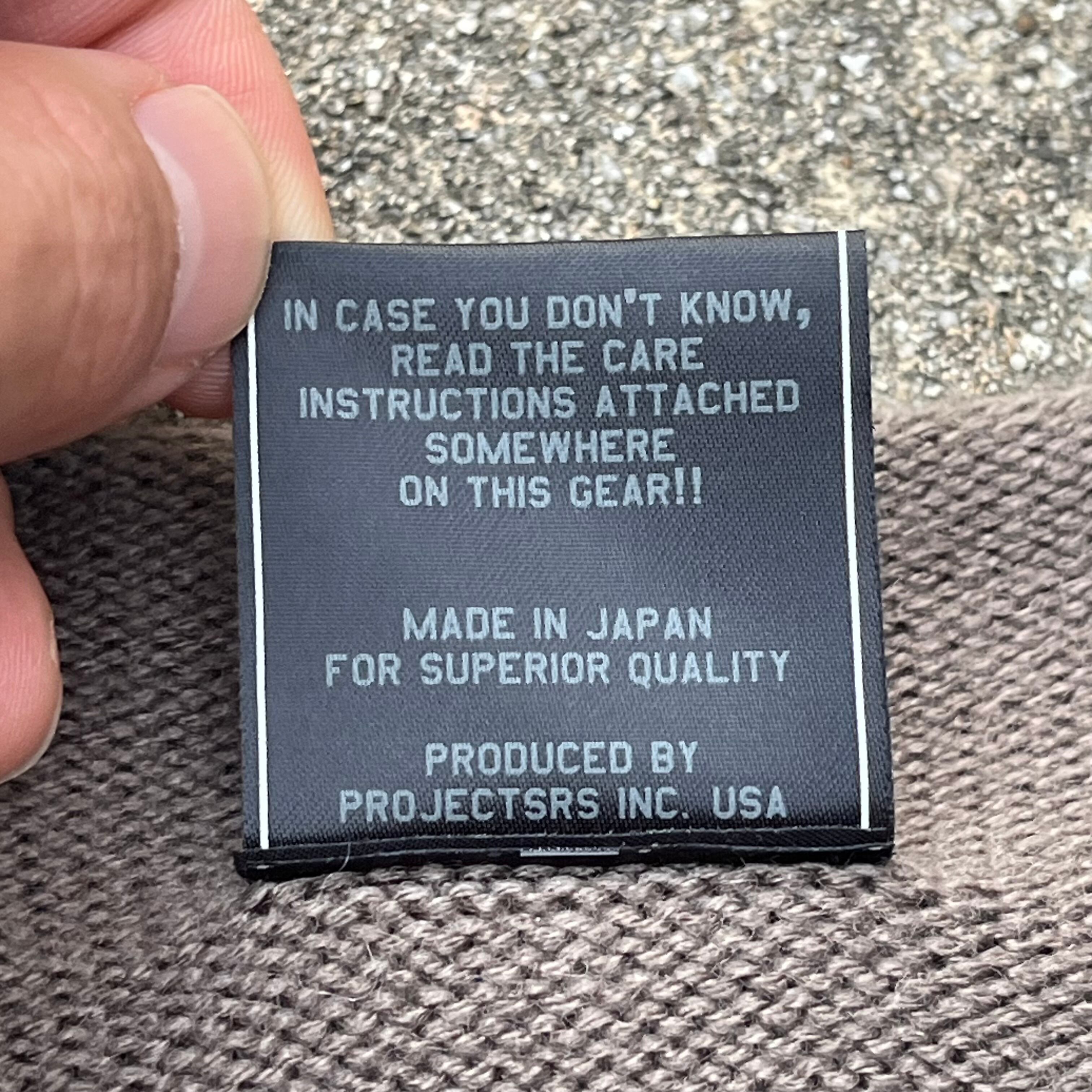 両面に有刺鉄線のような控えめなデザイン、リブのない首や袖、裾。